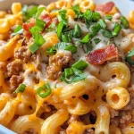 Loaded Cheeseburger Macaroni Pasta is the kind of dish that tastes like a hug from your favorite sweater — rich, cheesy, and wonderfully nostalgic. I remember the first time I made this for a rainy weeknight: the house filled with that irresistible aroma of browned beef and melted cheese, and everyone at the table scraped their bowls clean. This Loaded Cheeseburger Macaroni Pasta is perfect for weeknight dinners, casual Sunday family meals, potlucks, and even game-day spreads.